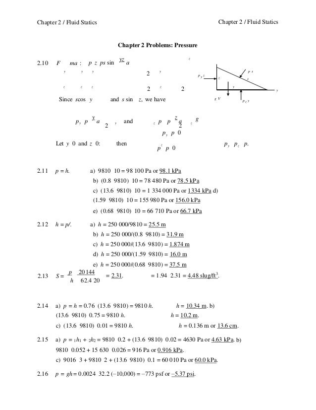 - Fluid Mechanics 5th Edition, chapter 2 Solutions (Douglas) - Free download as PDF File (.pdf), Text File (.txt) or read online for free. Chapter 2 solutions!